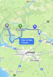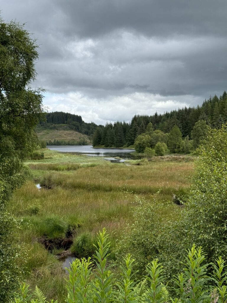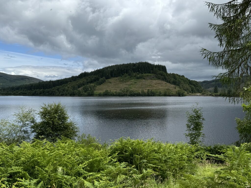 Am Three Lochs Forest Drive kann man ganz amerikanisch mit dem Auto durch den Wald an drei Lochs vorbeifahren. (Zu Fuß wäre es aber auch arg weit.) Am Loch Drunkie machten wir Halt und wanderten ein wenig umher. 😊
