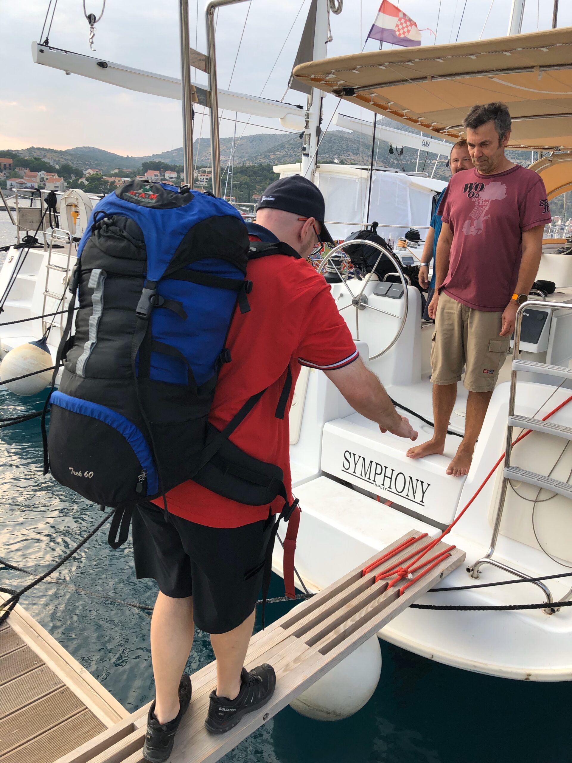 Nach einem leicht verspäteten Flug und einer etwa einstündigen Taxifahrt entlang der Küste sind wir in Marina Slano angekommen, und ich konnte meine luxuriöse Doppelkabine auf der Symphony beziehen. 😊
