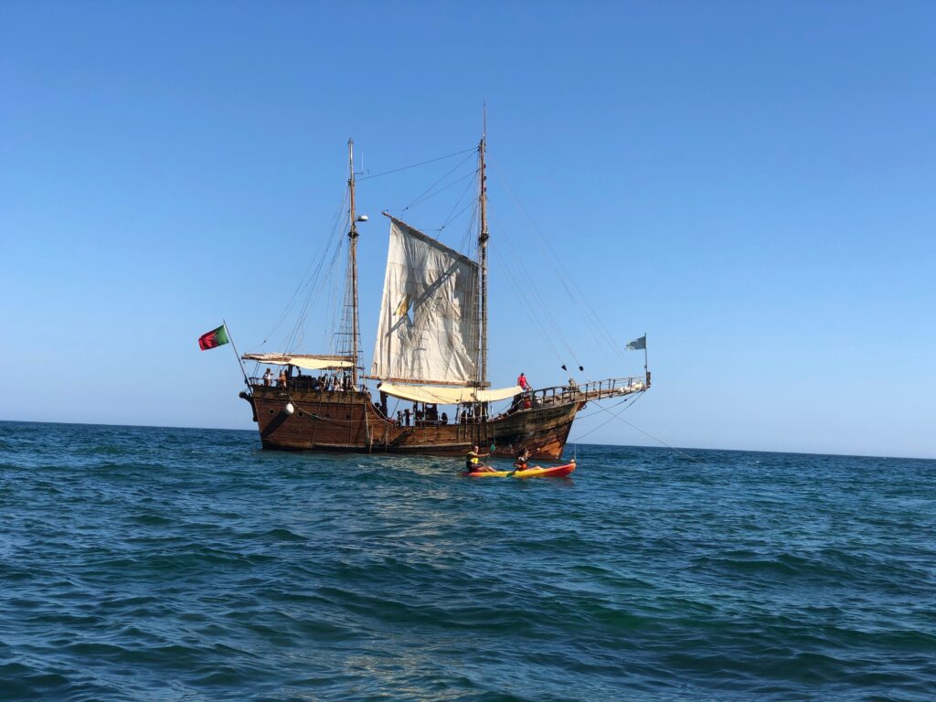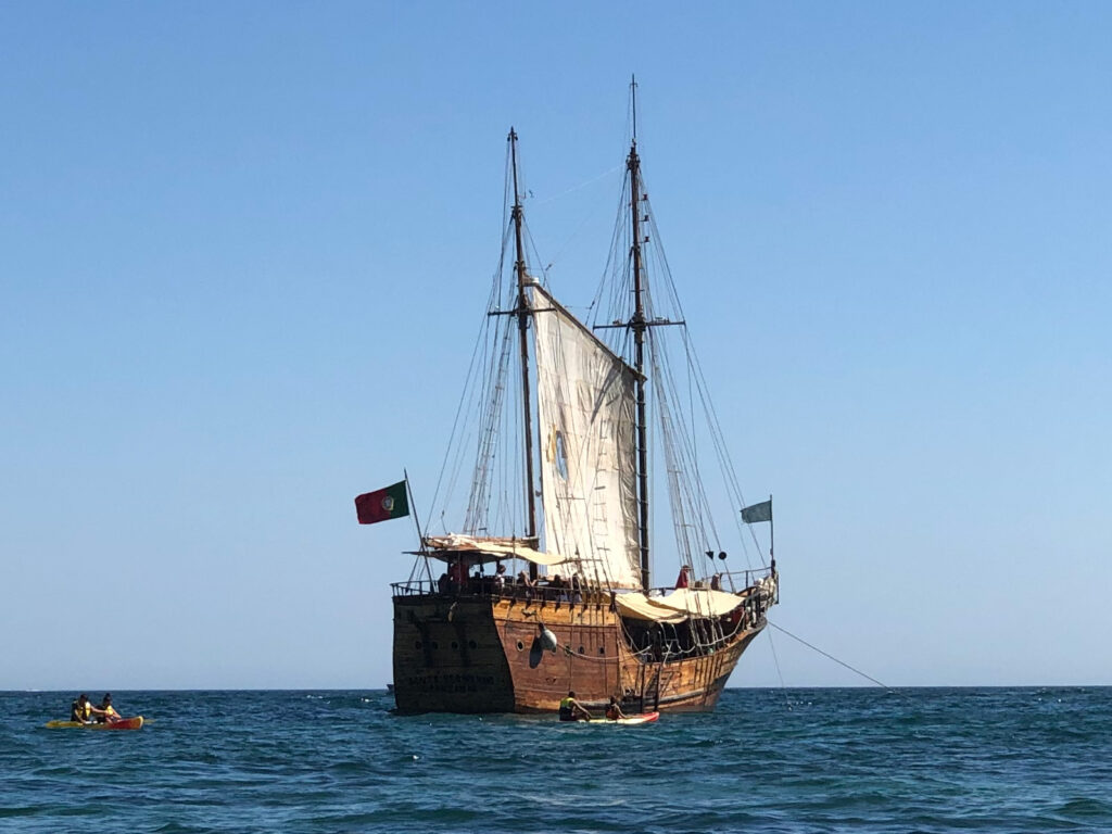 In Portimão haben wir auf der „Santa Bernarda“ angeheuert und sind schön die Küste entlang gesegelt.1 Später haben wir ein erfrischendes Atlantikbad genommen und sind schließlich ins Beiboot umgestiegen, um auch noch die Benagil-Höhlen zu besichtigen. Letztere waren der am meisten beworbene und für mich erwartungsgemäß uninteressanteste Teil des Ausflugs. 🙂
