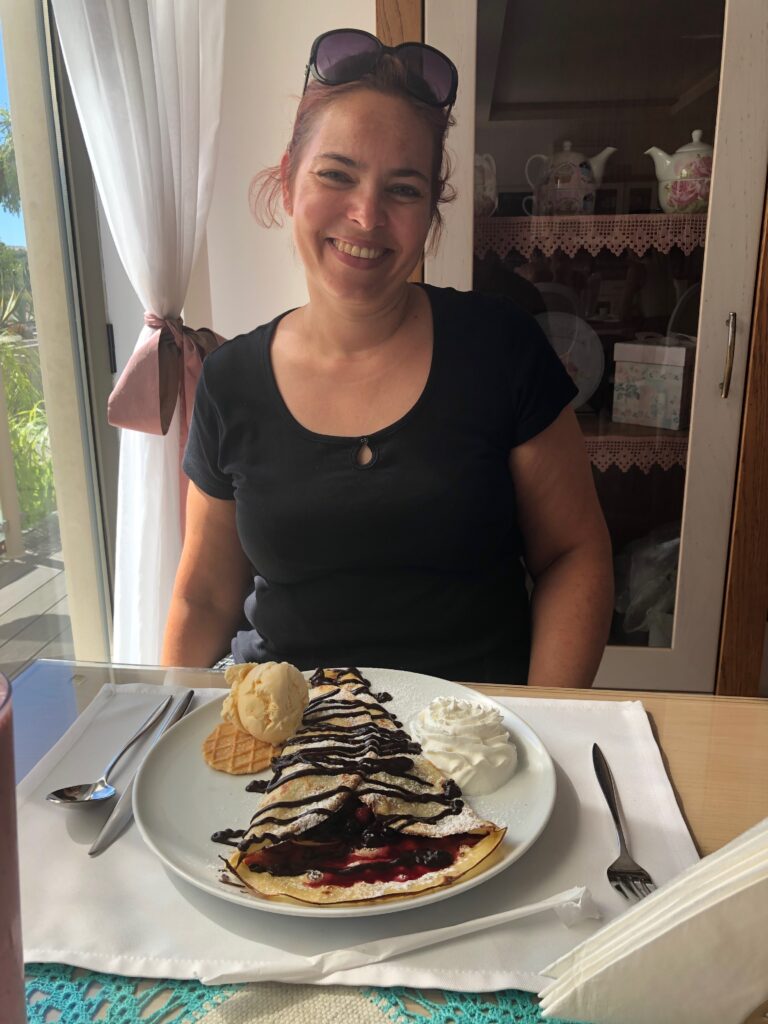 heute mussten wir schon wieder früh aufstehen, zum Kofferpacken. 😩 Als alles verstaut war und wir ausgecheckt hatten, sind wir noch ganz gemütlich frühstücken gefahren. Schließlich hatten wir für die Rückfahrt nach Lissabon, die Rückgabe des Mietwagens und den Transfer zum Flughafen ein großzügiges Zeitpolster eingeplant. Keine Eile im Urlaub.