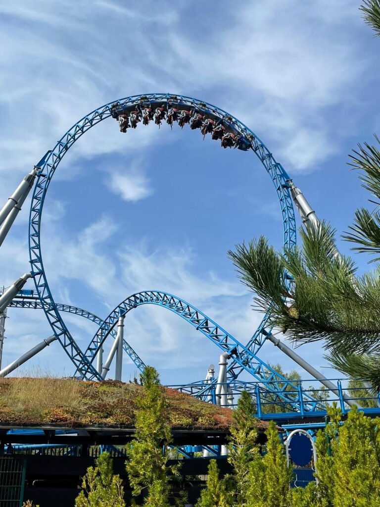 Aber heute war ich schlauer und habe mich von Bahnen, die einen in 2,5 Sekunden von 0 auf 100 km/h beschleunigen und über vier Überkopfelemente einschließlich einer 360°-Schraube verfügen, fern gehalten. Benny durfte das Höllengefährt allein bezwingen.
