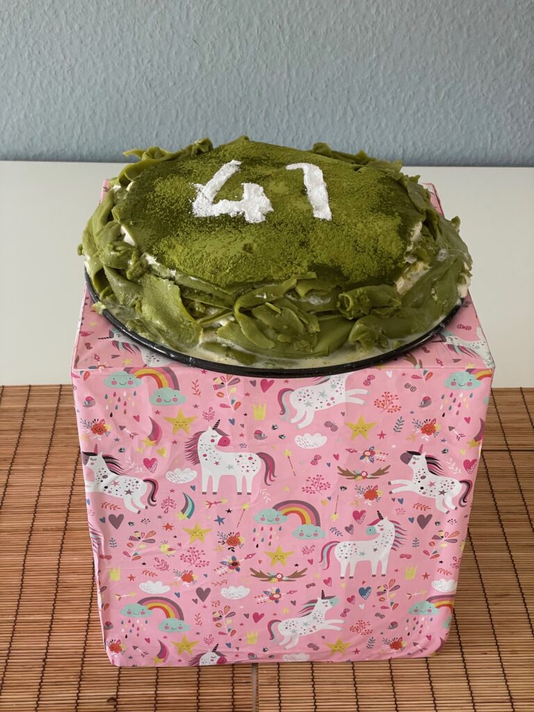 Nach einer kurzen Unterbrechung zwecks Videokonferenz mit der Arbeit („Haha, ich hab Urlaub und ihr nicht!“) schlug ich also die Sahne (sie hatte es nicht anders verdient) und saute die Küche ein, bis das Werk schließlich vollendet war (und aufgrund der hohen Temperaturen gleich wieder in sich zusammenfiel). 🙄