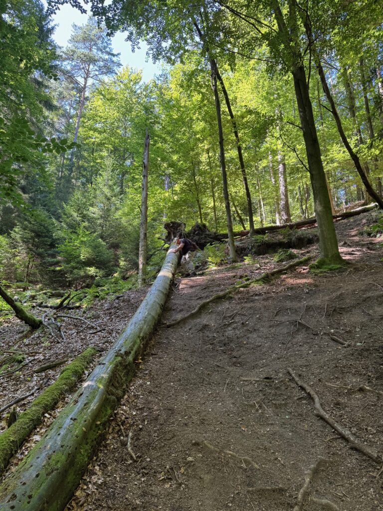 Unsere Wanderung begann sanft, entlang von Wiesen und Wäldern. Doch dann kamen wir zu einer Weggabelung, in die eine Richtung ging es zur Teufelskammer und in die andere zur Teufelsschlucht. Es gab kein Entrinnen. Also stiegen wir hinab in die Teufelskammer. Eben noch im Wald unterwegs, waren wir in einer anderen Welt angekommen. Umgeben von moosbedeckten Steilwänden, unglaublich viele verschiedene Grüntöne überall.