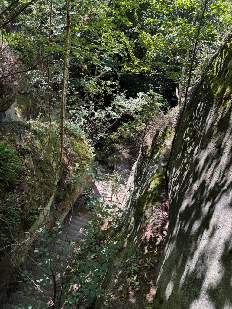 Unser Weg führte uns zum Lichtenhainer Wasserfall, dann hinauf zum Kuhstall, noch ein Stück weiter die Himmelsleiter hinauf und schließlich zurück nach unten.