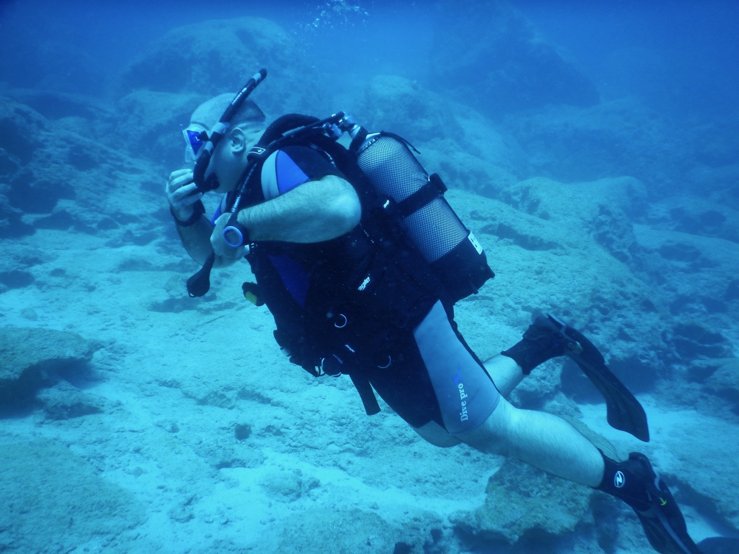 Beim ersten Tauchgang wurde neben der Bedienung des Tauchcomputers auch die Nutzung eines Kompasses trainiert. Ich kann mich nicht erinnern, dass ich vor 10 Jahren Ähnliches gelernt hätte. Die Trockenübungen auf dem Parkplatz der Tauchbasis machten sich bezahlt, und Benny kam im Wasser fast dort an, wo er ankommen sollte. Wenn sich das Magnetfeld der Erde plötzlich verschiebt, kommt es halt zu gewissen Abweichungen.